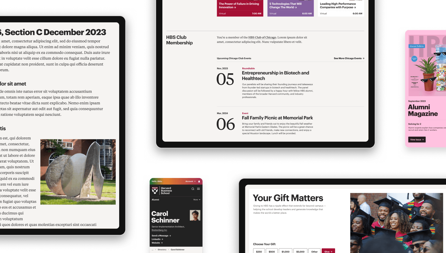 The first phase of the Harvard Business School design system was already in place when I joined the project. But there was still plenty to build on, especially when it came to creating a more intuitive and usable experience for Harvard’s active alumni community.